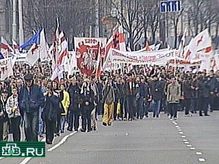 Белорусская оппозиция проводит в Минске акцию протеста против предстоящих 15 октября выборов в нижнюю палату парламента республики. В акции, проходящей под девизом "Нет избирательному фарсу!" принимают участие более двух тысяч представителей всех оппозиционных партий. Как сообщили организаторы мероприятия, минский горисполком, после длительных переговоров, санкционировал шествие по центральным улицам и митинг в парке у национальной оперы.