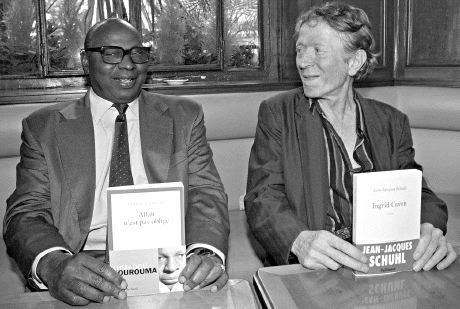 Справа - лауреат Гонкуровской премии-2000 Жан-Жак Шуль. Слева - лауреат премии "Ренодо"-2000 Амаду Курума. Курума - вылитый Марцеллус Уоллас, а Шуль смахивает на лавочника, который Марцеллуса... сами знаете что. Видите, как умильно Шуль на Куруму смотрит - уж и рубаху расстегнул? Не иначе, ждет-пождет момента, когда появится барон де Гюнзбург, произведет свое шаманское "Мумм!!!" - и можно будет приступать.