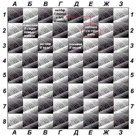 Ход Пелевиным , "Чапаев и Пустота" : "Мне вспомнилось его стихотворение, года три назад напечатанное в "Новом Сатириконе", - там как бы пересказывалась газетная статья о разгоне очередной Думы, а акростихом выходило "мене текел фарес"..." Кстати - прямо отсюда, из "Чапаева и Пустоты", есть четкий, гладкий и простой интертекстуальный переход к "Тимуру и его команде", простой - проще некуда, и такой красивый, о каком можно только мечтать. Кто найдет - тому 1 очко. Ваши версии?