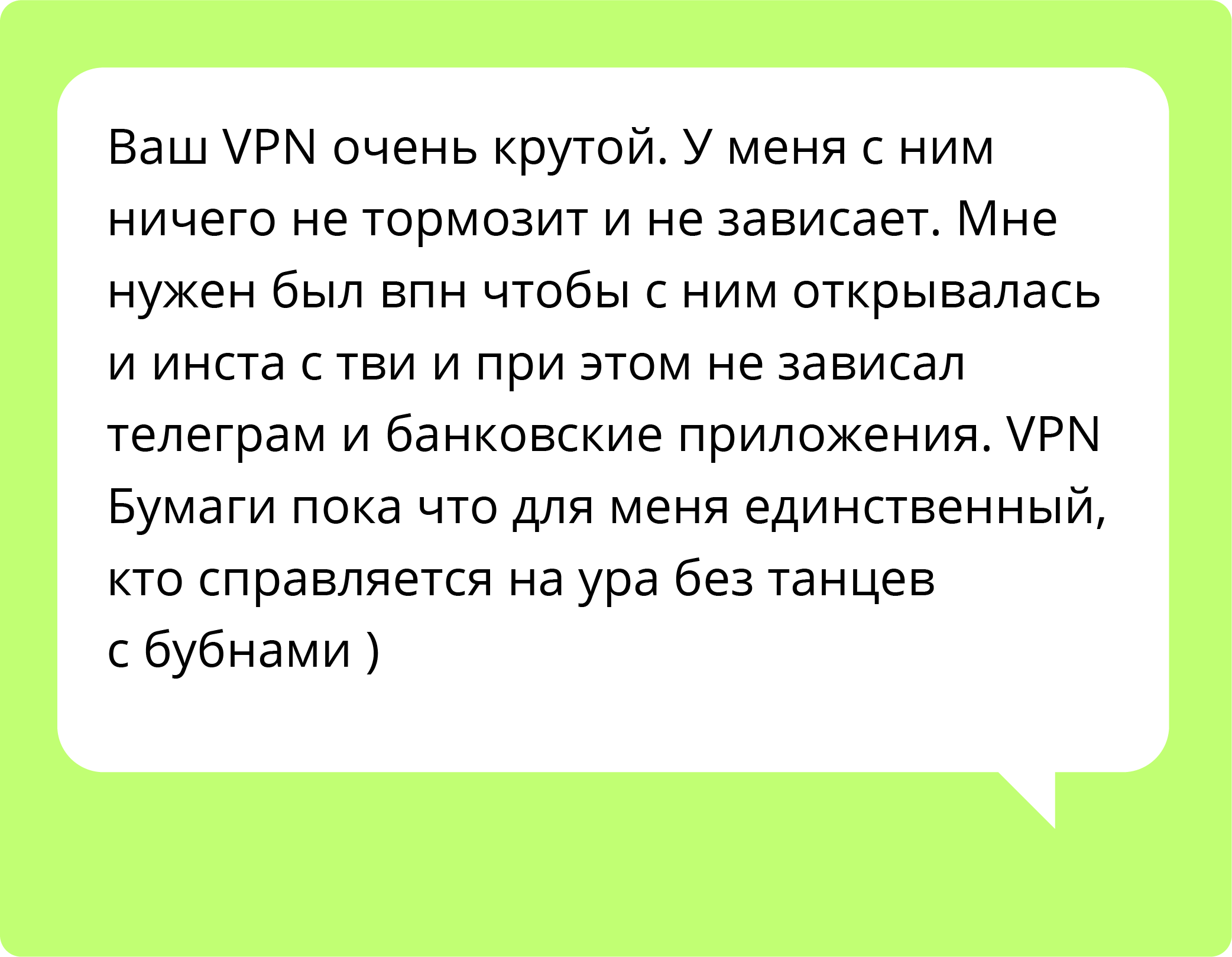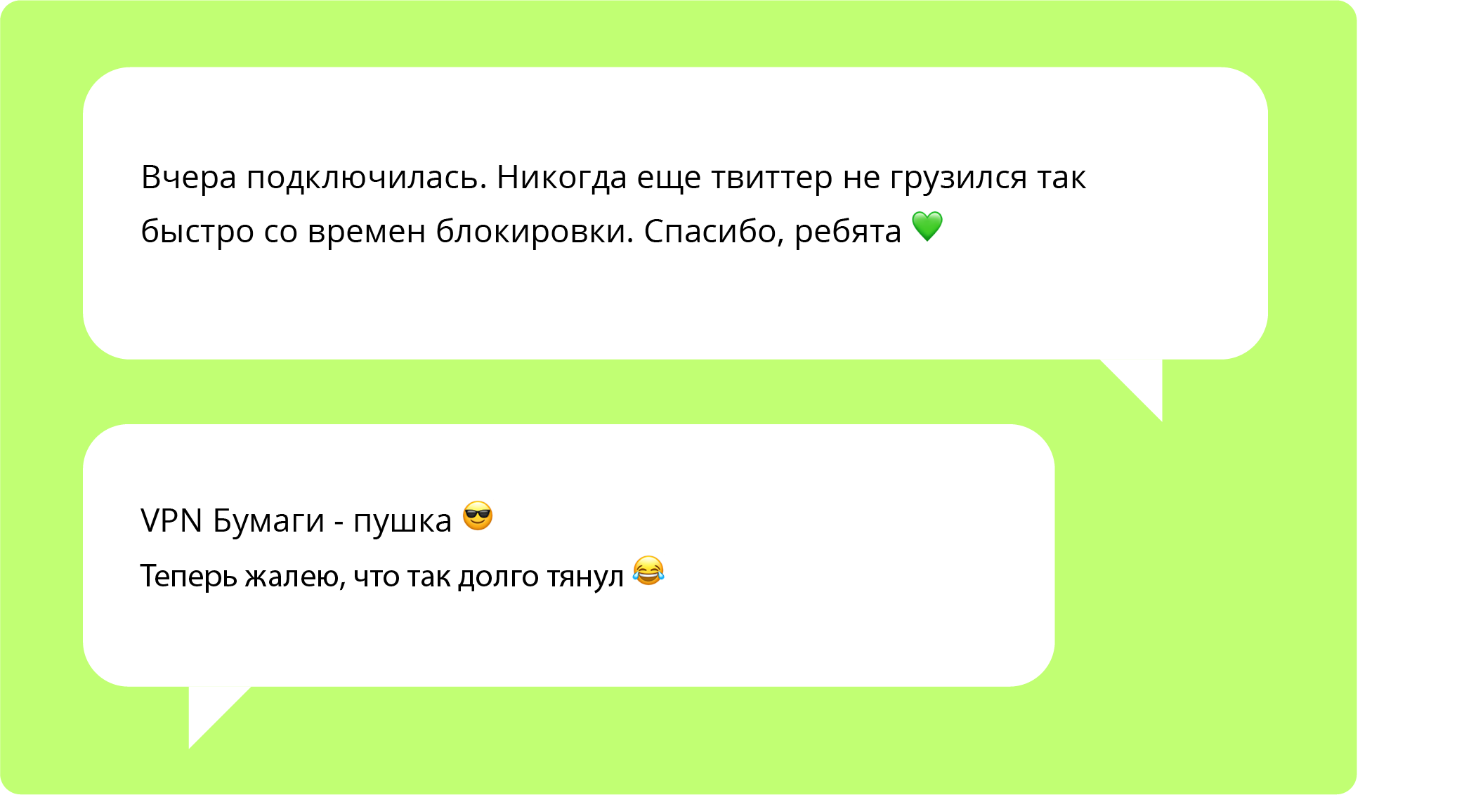 После масштабной блокировки независимых СМИ на территории России сайт «Бумаги» был заблокирован. Для нас Paper VPN — это не только полезный продукт, но и то, что дает нам возможность продолжить работу: деньги за подписку идут на зарплаты сотрудников «Бумаги».
