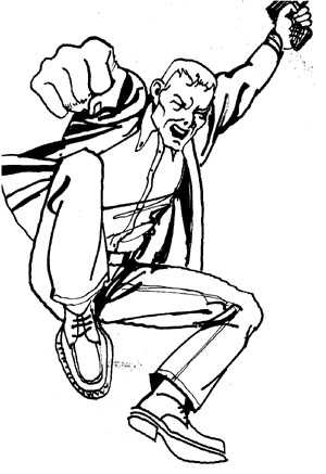 О чем пока не говорят журналисты (до Митиной рецензии были маленькие заметки по радио и в "Экслибрисе") - как книжка издана. На белой бумаге и с 13-ю внутренними иллюстрациями, что для боевика, конечно, роскошь. Она, правда, только на первых 5 тысяч, дальше попроще печать пойдет. Вот одна из картинок Святозара Острова (как я его в Питере искал - 10 художников обошел! - как потом с издателями за его гонорар воевал - отдельные эпопеи).