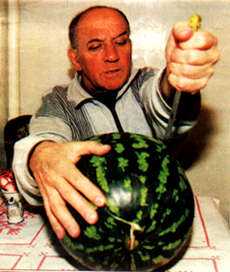 Согласно А.Степанову, применив описанную им методику , всякий может у себя на бахче заставить арбузы принять именно вот такую форму взамен от природы им положенной круглой.