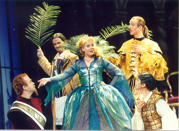 Игорь Фолвилл, режиссер геттингенской постановки, помирил старые традиции и современность. Его постановка обыгрывает барочные штампы сценографии и теории аффектов, но действие развивается будто в безвоздушном пространстве, вне какой-либо эпохи, что отличает его от современных режиссеров-концептуалистов. Трусливый фаворит королевы Арзаче заливается трелями, когда Партенопа щекочет ему пятки, его невезучий соперник Арминдо, добившись все-таки благослосклонности своей любимой, танцует жигу и улюлюкает как тинейджер на дискотеке, но это не выглядит пошло. Режиссер тактичен и никогда не посмеет сделать что-то поперек музыки. Более того - вместе с дирижером Николасом Макгеганом он подбирает великолепных исполнителей, которые идеально соответствуют своим героям - может, даже больше внешними данными, чем голосами. Им веришь. Они раскованы, обладают великолепным ощущением сцены и наделены чувством юмора, которые в "Партенопе" необходимы. На первом плане, конечно, королева - Мередит Холл, 28-летняя сопрано из Канады, красотка и ироничная актриса, которой за одну улыбку можно простить некоторые вокальные погрешности. Рядом с ней - авантюристка Розмира, по воле судьбы облаченная в мужской костюм, - опытная Аннетт Маркерт из Германии, которую привечали почти все европейские дирижеры-барочники. Женщины - наиболее серьезны, комедию же ломают кавалеры Партенопы - позер Арзаче (Кай Вессель), копуша Арминдо (Крис Джози) и задира Эмилио (Джон Маквей). За три часа действия они успевают доставить публике немало удовольствия и, ведя комедию с истинно шекспировским размахом, не забывают и о музыкальных кульминациях, когда действие останавливается, уступая место генделевским мелодическим красотам. В "Партенопе" Гендель, кстати, совсем другой, нежели в своих серьезных операх и библейских ораториях. Николас Макгеган, каждый год выискивая в его обширном наследии какой-нибудь раритет, не боится наскучить публике - у Генделя столько хорошей музыки, что хватит еще лет на сто.