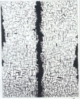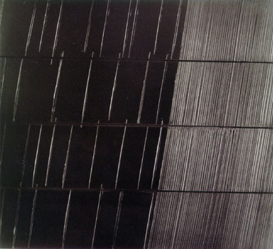 Когда-то с языков оголтелых советских критиков с легкостью срывалось перченое словечко "формализм", на которое жутко обижались наши нонконформисты. Для мосье Сулажа "формализм" - бальзам на душу, ибо занимается он без всяких задних мыслей (и даже без мыслей вообще) исключительно художественным ремесленничеством: и так и эдак очень красиво размазывает и нашлепывает на холсты черную краску, любуясь ее кладкой и переливами. Некогда, в послевоенные годы, это выглядело радикальным жестом: эдакие черные и смолистые шпалы и балки на белых холстах обличали бурный, но сжатый, как пружина, темперамент художника. Короче говоря, на общем фоне тогдашней французской абстрактной размазни Сулаж выглядел истинным "суровостильцем".