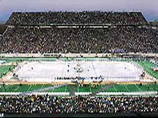 Однако, как сообщает РИА "Новости", специально для побития достижения 45-летней давности студенческие команды "спартанцев" и "росомах" из Мичигана перенесли свое традиционное (уже 238-е по счету) дерби на футбольный стадион, в центре которого была помещена хоккейная коробка с холодильной установкой. Истратив 600 тысяч долларов на организацию матча, им удалось собрать полные трибуны и еще 2 тысячи дополнительных кресел, установленных прямо на футбольном поле. Символическое вбрасывание шайбы произвел живая легенда североамериканского хоккея Горди Хоу.