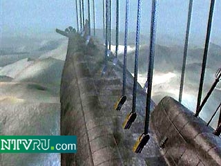 Пока голландцы не говорят, какая это нагрузка может быть, но с минуты на минуту, возможно, атомоход "Курск" будет немножко приподниматься над грунтом, сообщает НТВ. Лодка будет подниматься с кормы. И уже после этого, как только лодка будет чуть-чуть приподнята, будет под нее введен так называемый подрезывающий трос. Как только он пройдет под лодкой, она будет оторвана от грунта.