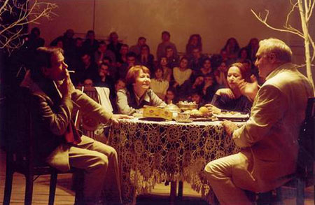 Каждый раз "Балтийский дом" заканчивается чьей-то победой в конкурсе на получение гранта для создания спектакля, который будет показан здесь через год. Таким образом, прошлогодние раздельные успехи драматурга-импровизатора Евгения Гришковца и режиссера-авангардиста Андрея Могучего обернулись совместным проектом в театре "Балтийский дом", который, действительно, достаточно безумен, чтобы иметь место. "Пьеса, которой нет" не спектакль в привычном смысле этого понятия. Пьесы действительно нет. Нет сюжета, характеров, действия. Есть пространство, в котором двадцать лет назад сыграли "Чайку" в Ленинградском Ленкоме, и в нем четверо артистов, тогда исполнявших роли Аркадиной, Заречной, Тригорина, Шамраева. Они разговаривают о жизни. Ничего существенного, обычная болтовня, что-то повторяется от представления к представлению, что-то - нет. Отсутствие того спектакля, последней постановки режиссера Геннадия Опоркова, создает необыкновенный эффект: отсутствие как драматический, сценический объект. На тот спектакль не выходят впрямую ни разговоры, ни музыка. Но вокруг тех мизансцен, в непосредственном касании к ним, строится движение актеров; варьируются те самые характеры, а главное, возникает та самая атмосфера, тот стиль. Пьесы нет. Она жила здесь, она отсутствует. Прошло двадцать лет. Прошедшее время тоже стало невидимым, нематериальным сценическим объектом. Время предметно в расхождении актеров со старыми ролями, и в одиночестве ролей без "своих" актеров. Можно вывести традицию этого проекта из "Балаганчика" Блока и Мейерхольда, из пиранделловской конструкции "Шести персонажей в поисках автора", с той разницей, что там в итоге история рассказывалась, спектакль сочинялся, пусть неправдоподобно или по частям, а здесь - пьеса кончилась, она обернулась пустотой, которая обладает сильнейшей центростремительной энергией, и вокруг нее может крутиться драматическое напряжение. В доме повешенного не говорят о веревке, не говорят, не говорят, не говорят, не говорят... Значит, она и так там - более чем реальность. А в доме, где играли "Чайку", не говорят о "Чайке".