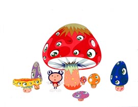 Вот он, DOB, на картинке - рядом с веселыми глазастыми грибами.