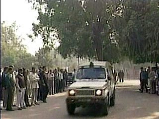 Террористы в возрасте от 25 до 30 лет, одетые в военную форму, подъехали сегодня днем на машине к одному из входов на территорию парламента и, представившись охране сотрудниками полиции одного из соседних штатов, пронесли в сумке для телекамеры автоматы АК-47 и гранаты. Они внезапно открыли стрельбу, а один из террористов подорвал себя гранатой, когда был окружен сотрудниками служб безопасности.
