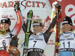 Несколько уступила ей занявшая 2-е место горнолыжница из США Кристина Козник, на 3-м месте - француженка Лаура Пеквено.