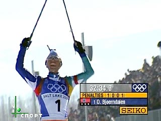 Восьмой день Белой Олимпиады с самого утра принес сенсацию. Норвежский биатлонист Оле Эйнар Бьорндален стал трехкратным олимпийским чемпионом Солт-Лейк-Сити, выиграв в гонке преследования на дистанции 12,5 километров. Второе место занял француз Рафаэль Пуаре, а "бронза" досталась немецкому биатлонисту Рико Гроссу.