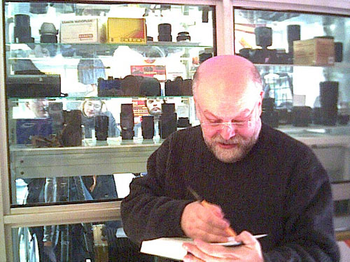 Думая о Хачатряне, я побрел в Фотоцентр на Гоголевском , где открывалась очередная порция выставок фотобиеннале-2002 . Смутность моих ощущений там только усилилась. Душно, толпа, кто-то дает интервью, кто-то хватает стаканчик с вином, кто-то ругается на порнографию, кто-то ищет знакомых, кто-то вспоминает вчерашний показ шляпок работы жены банкира Гафина в Большом театре, одновременно спеша с накрытого в ЦДХ , обильного красной икрой, стола выставки "Дизайн и реклама" на еще одно шляпное парти в музее декоративного творчества. В общем, от этих безумных мартовских шляпников крыша едет.