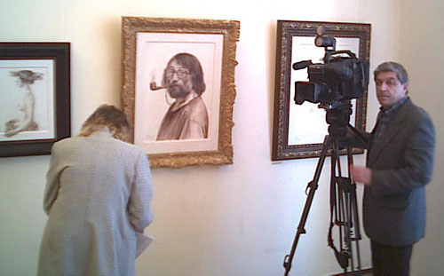 П ривет. Сегодня без лирики. Кругом и так весна, и надо успеть доложить трезвым голосом. Начну с самого трезвого - с Академии художеств , где огромная юбилейная выставка Рудольфа Хачатряна (род. в 1937) - к 65-летию со дня рождения. Сам приехал из Лондона. Вся армянская диаспора - из Еревана, Парижа и Москвы. Народу набралась тьма. Выставка - с ученических работ 51-го года, где уже видна тщательность прорисовки деталей, до последних лондонских серий, однообразных, как размноженный фрагмент "Герники" Пикассо, ну там, где нога клешней. Вот так много-много клешней - инсталляциями, черно-белой графикой, наклеенным картоном. Я, как многие, любил и люблю портреты, которые делал Хачатрян в 70-е годы. Завораживающие работы в духе мастеров Возрождения - любимых им Леонардо и Дюрера. Причем без всякой стилизации и подъебки (извини, не найду слова), которая сразу чувствуется. Наоборот, с какой-то последней печалью стилистического анахронизма. Поэтому, когда в 89-м году Вильям Мейланд выставил Хачатряна вместе с Шиловым и Глазуновым в концептуальной выставке "Сделайте нам красиво", это меня как-то обидело.