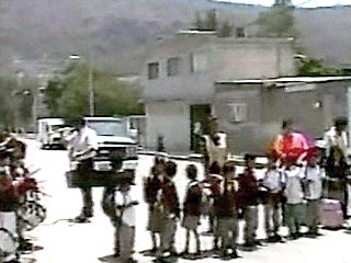 Телекомпания НТВ показала страшные кадры трагедии: на дороге стоит большая группа людей, за ними √ серый фургон. Внезапно фургон разгоняется и врезается в школьников. Двое малолетних детей попадают под колеса и остаются лежать на дороге в луже крови. Остальные, получив удар автомобиля, отброшены в стороны. Среди пострадавших оказался в 4-месячный ребенок.