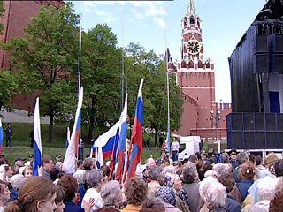 В Москве на Красной площади прошел митинг молодежной организации "Идущие вместе" в честь двухлетия инаугурации президента Путина. Как сообщает корреспондент московского бюро компании NTV-International, в нем приняли участие 35 тысяч активистов движения.