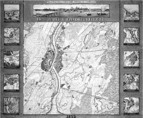 Ярким примером того, как карта, превращаясь из произведения искусства в научно-технический документ (точная математическая основа, утвержденные для территории всей империи условные знаки, определенные размеры шрифтов для любой надписи, строго обусловленные цветовые обозначения ландшафта и многое другое), является план города Новгорода и окрестностей.