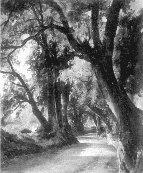 Уже упоминавшийся последний пейзаж Михаила Лебедева, «Аллея в Альбано» (1837), был его попыткой реализовать новаторскую программу — написать картину, в которую, по его словам, было бы «можно идти»[7]. В европейской живописи XVI–XVIII веков не считалось, что пейзаж и вообще картина имеют какое-либо отношение к реальному, физическому пространству зрителя, но теперь ситуация меняется. У пейзажа, в который «можно идти», во-первых, первый план близок и открыт (по академическим правилам на нем полагалось писать так называемые «репуссуары» — кусты для отталкивания взгляда), во-вторых, точка зрения примерно на высоте человеческого роста (а не где-то в заоблачной выси, как это было принято раньше).