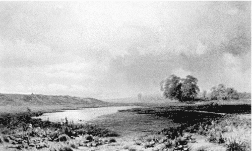 Такие пейзажи — написанные передвижниками и близкими к ним художниками — были двух родов, двух эмоциональных модусов. Первый, позитивный и исполненный гордости за свою землю, представлен в основном Иваном Шишкиным с его хрестоматийной «Рожью» (1878) и другими работами; на обороте одной он в эти годы записал: «Раздолье, простор, угодье, рожь, Божья благодать... Русское богатство»[2]. Еще один вариант такого умонастроения — торжественная «Пашня» Михаила Клодта (1871). Ее повторы художнику заказывали неоднократно, и один только этот факт свидетельствует, что «бодрых» пейзажей русского раздолья явно не хватало. Большинство живописцев предпочитало другой эмоциональный модус огромного пространства — «унылость».