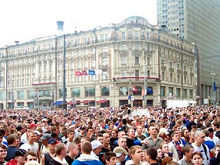 Воскресные беспорядки в самом центре Москвы, в ходе которых один человек погиб и несколько десятков получили ранения, вызвали шквал обвинений в адрес московских властей и милиции, которые не смогли предотвратить погромы. Политики, чиновники и журналисты обвиняли во всем неуправляемую толпу, разгоряченную спиртным, футбольных фанатов, бритоголовых экстремистов и даже фирму, показавшую после матча рекламный ролик.
