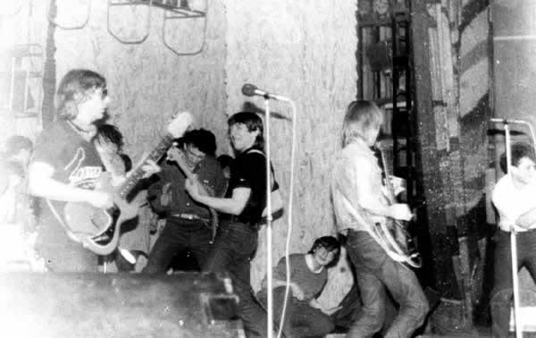 Концерт Майка в Тюмени в ДК "Геолог". Слева - Майк, на заднем плане - азартно пляшут тюменские поклонники его творчества, прорвавшиеся на сцену