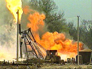 В Чечне группа неизвестных бандитов обстреляла из автоматического оружия хранилище центрального нефтедобывающего комплекса, в результате чего на объекте, вмещающем пять тысяч тонн нефти, возник пожар.