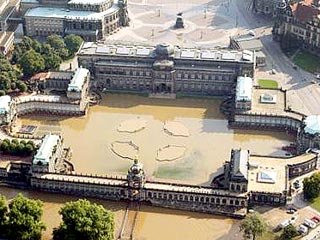 Как известно, сокровища Дрезденской галереи, Оружейной палаты и знаменитого музея "Зеленые своды" удалось спасти от наводнения. Многочисленные произведения культуры из подвальных запасников были перенесены на верхние этажи дворцового комплекса "Цвингер", территория которого уже двое суток покрыта метровым слоем воды.