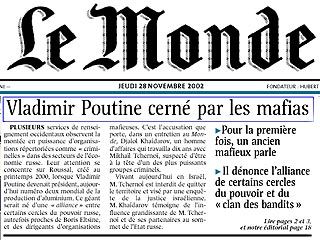 Одна из ведущих французских газет Le Monde публикует сегодня результаты эксклюзивного расследования отношений Владимира Путина с российской политической элитой и криминальными структурами (NEWSRU.com опубликует его в ближайшие часы). Этой же теме посвящена и редакционная статья, перевод которой публикует Inopressa.ru.