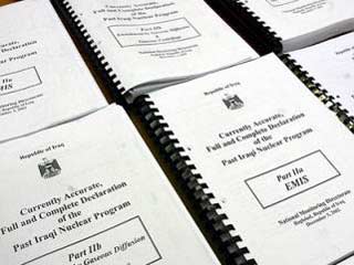 Официальные представители Ирака доставили в представительства ООН в Багдаде две большие сумки и четыре коробки с бумагами: в отчете насчитывается более 12 тысяч страниц. Ядерной, химической, биологической и ракетной программам Ирака в этом отчете посвящено по отдельному тому. Кроме того, к отчету прилагается несколько дисков, содержащих, как предположили журналисты, дополнительную информацию.