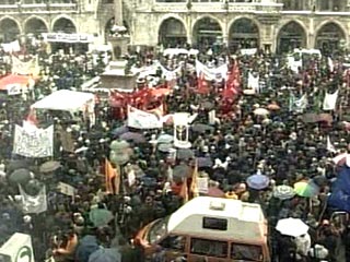 По данным официального представителя мюнхенской полиции Вольфганга Венгера, в двух прошедших в субботу в Мюнхене демонстрациях против войны в Ираке принимали участие от 15 до 20 тыс. человек, передает РИА "Новости". Венгер допустил, что если бы не сильный снегопад, демонстрантов было бы больше.