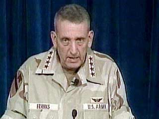 "Для меня кристально ясно, что моя задача - разоружение иракского режима", - заявил накануне Фрэнкс агентству AP. Поимка или ликвидация главы Ирака Саддама Хусейна - не главная задача военной операции США в Персидском заливе, подчеркнул Фрэнкс. По его словам, если иракский лидер выполнит все требования ООН, "это само по себе будет знаком того, что режим изменился".