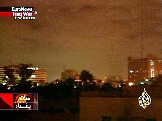 Три мощных взрыва потрясли центр Багдада в среду поздно вечером после дня интенсивных воздушных атак американо-британской авиации на окраинах иракской столицы.