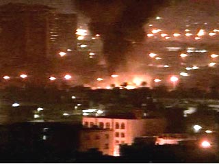 Рано утром в воскресенье в министерство информации попала, по меньшей мере, одна американская ракета. Пока не ясно, является сегодняшний взрыв результатом новой бомбардировки.