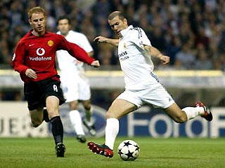 Мадридцы не стали долго спорить по поводу этого решения, а принялись искать новые подходы к воротам соперника. И вновь взоры всех игроков в белой форме (а "Реал" играл именно в белом) обратились к Зидану, а тот отдал великолепную передачу Раулю, который пробил в ближний угол Бартеза . 2:0. После этого игра как будто успокоилась, но было видно, что "Реал" полностью контролирует ход игры. Это иллюстрирует и тот факт, что "МЮ", после 28-й минуты, смог сделать лишь одну контратаку, да и ту неудачно завершил ван Нистелрой. А в начале второго тайма все стало ясно. Рауль, после передачи Луиша Фигу, из-за пределов штрафной делает счет . 3:0 . все кончено? Конечно же "Манчестер" был с этим не согласен, и через минуту ван Нистелрой воспользовался неразберихой в штрафной Касильяса, отправив головой мяч в ворота . 3:1.
