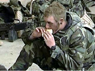Каждому взводу разрешено добывать не более одной газели в день, чтобы не уничтожить популяцию, отмечает Ananova. Повар готовит добычу на костре, выжимая в мясо апельсиновый сок из плодов, которые после того, как бои закончились, стали доставлять морпехам. Блюдо получается очень вкусное. "Просто объеденье. Не знаю уж, может, потому что мы пайками два месяца питаемся, но всем очень понравилось", - говорит повар Джошуа Виксел.