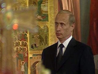 Как сообщает РИА "Новости", Владимира Путина у входа встретил настоятель храма, после чего президент России вошел в церковь и встал справа от алтаря.