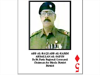 Абдулла числился как "бубновая пятерка" в списке наиболее разыскиваемых американцами иракцев, представленном в виде колоды игральных карт.