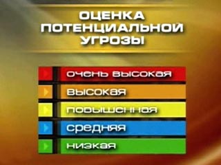 Об этом сообщили журналистам высокопоставленные представители американской администрации, по данным которых с сегодняшнего дня уровень этой угрозы считается "высоким" и обозначается оранжевым цветом по 5-уровневой шкале, принятой в США.