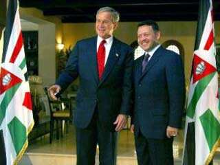 До этого утром Джордж Буш провел двусторонние встречи с Абдаллой II, Ариэлем Шароном и Махмудом Аббасом.