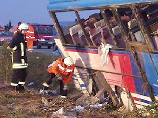 Трагедия произошла на скоростной трассе у города Вайсенфельс в земле Саксония-Анхальт. Автобус сошел с автобана на обочину, пробил дорожное ограждение и перевернулся. Другие автомобили к инциденту не причастны.