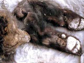 Эти понятия совместились в представлениях европейцев и обратились снежным человеком, объясняет Небука. В доказательство своей позиции он показывает фотографию "йети" - медведя - голова и лапы которого хранятся у одного из тибетских проводников в качестве талисмана.