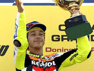 24-летний гонщик команды "Хонда", выиграл в 2001 году чемпионат мира по мотогонкам в классе 500 кубических сантиметров, после чего это первенство и было переименовано в MotoGP. Пока никто кроме Росси не владел титулом по новой версии.