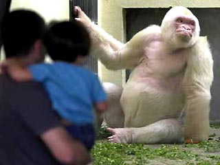 Свое необычное имя "Копито де Ньеве" (Снежок) получил потому, что он единственный на земле горилла-альбинос и у него совершенно белоснежная окраска. Барселонский зоопарк приобрел уникальную гориллу-альбиноса, родившуюся в Гвинее, в 1966 году.
