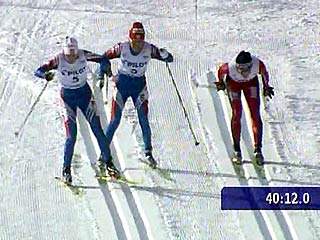 Редчайший случай - сразу три команды отстали от победителей менее, чем на 1 секунду Лишь 0,6 секунды уступили победителям лыжники Италии и 0,7 секунды - первая и вторая сборные России. Будущие победители держались пятыми после двух этапов, а на заключительный отрезок дистанции ушли вторыми. Итальянцы были третьими, а лидировала первая сборная России.