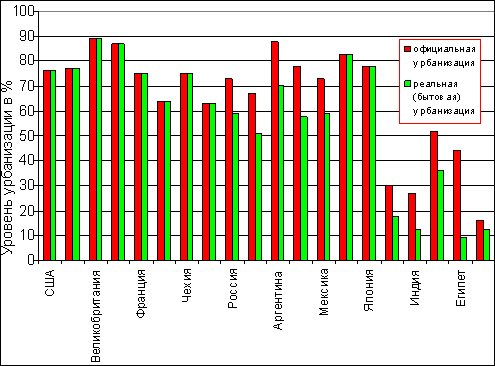 наверхПо «бытовой» урбанизации Россия ближе к Мексике, чем к США или Франции