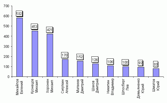 Среди наиболее упоминаемых персон – Лев Шлосберг (62), Владимир Никитин (53), заместитель председателя областного Собрания Анатолий Копосов (46), Александр Рогов (43), бывший секретарь Псковского политсовета «Единой России» предприниматель Виктор Семенов.