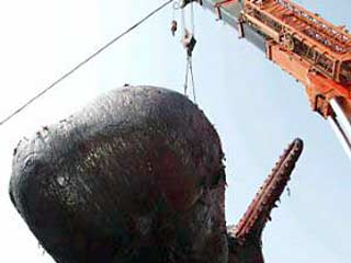 Гигантского кашалота, который, по мнению Вана, умер от старости, грузили на платформу 13 часов, для чего использовали 3 огромных крана и труд 50 рабочих.