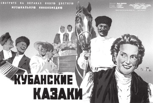 [7] Даже если это происходит не открыто, как, например, у двух молодых влюбленных из разных колхозов, образующих вторую любовную линию в фильме «Кубанские казаки», их начальство осведомлено о судьбе своих подчиненных лучше, чем они сами. Председатель Гордей Ворон начинает принимать превентивные меры против их союза еще до того, как состоялось признание в любви. Б. Зеленский. Кубанские казаки. Реж. И. Пырьев, 1950