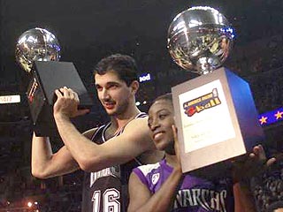 Чуть ранее Вошон Ленард из "Денвера" не дал защитить свой титул лучшего дальнобойщика Пеже Стояковичу из "Сакраменто". В финал этих соревнований вышел, помимо двух вышеназванных баскетболистов, еще и Кайл Корвер из "Филадельфии". До последнего момента этот молодой защитник "Сиксерз" создавал интригу, но бросая из угла площадки Стоякович оказался точнее, выиграв у Корвера всего лишь одно попадание.