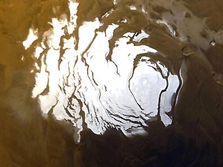 Ледяную шапку удалось сфотографировать на Южном полюсе планеты, и ученые не устают подчеркивать важность этого открытия. Дело в том, что сейчас на Марсе конец лета, и снимки ледяной шапки свидетельствуют о том, что она присутствует на полюсе круглый год.