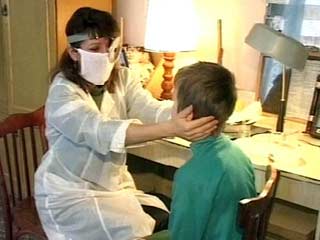 Заболевшие дети сидят дома. Медики берут у них анализы и проверяют состояние здоровья.